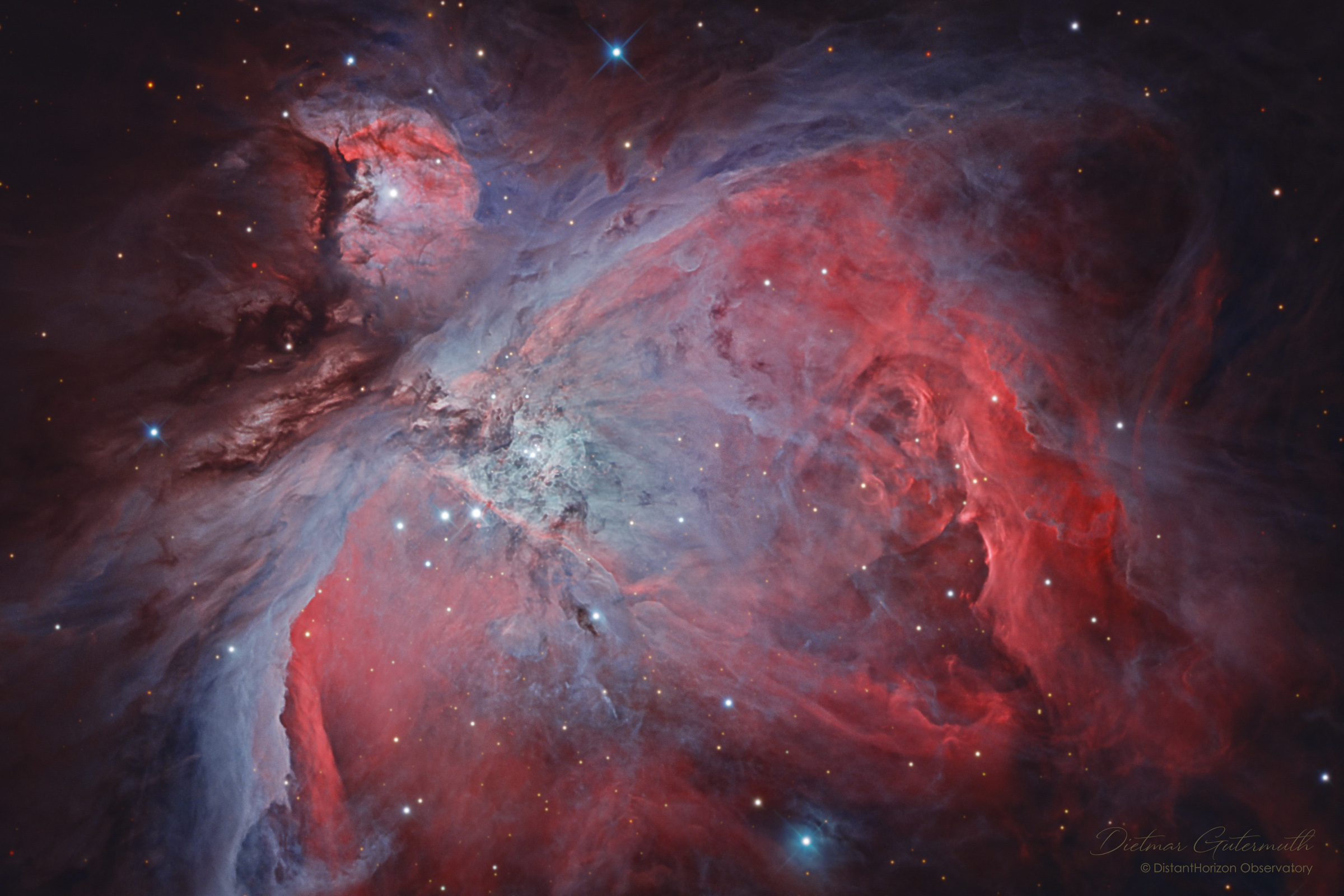 Dietmar Gutermut hat vor kurzem mal wieder eine beeindruckende Aufnahme von seiner Sternwarte aus gemacht. Dazu schreibt er, welcher Herausforderung er sich bei diesem Objekt gestellt hat und wie er dafür vorgegangen ist.Der Orionnebel gehört sicher zu den am meisten abgelichteten Deepsky-Objekten überhaupt und von daher erspare ich mir die detaillierte Beschreibung des Objekts.Meine letzte... [mehr]