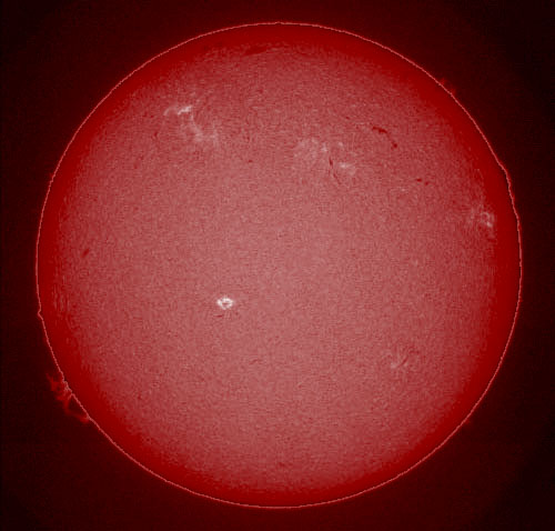 Am 17.02.2010 konnte die Sternwarte nach langer Zeit der Abstinenz durch den anhaltenden Schnee wieder genutzt werden.Manfred Chudy war der Erste und hat um 11:00 UT diese Aufname gefertigt. Die Sonne wure mit dem H-Alpha-Filter am Refraktor D80 F1200mm beobachtet. Die Bilder wurden mit der Mintron-Kamera aufgenommen.Die Aufnahme zeigt sehr schön einige Protuberanzen und einige Sonnenflecken.... [mehr]
