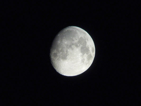 Am 26.12.2009 konnte um 18:00 UT der Mond mit dem Refraktor D60 F700mm und der Life E42001 Aldi Digitalkamera beobachtet werden. Empfindlichkeit ISO 200, Belichtung 1/200. [mehr]