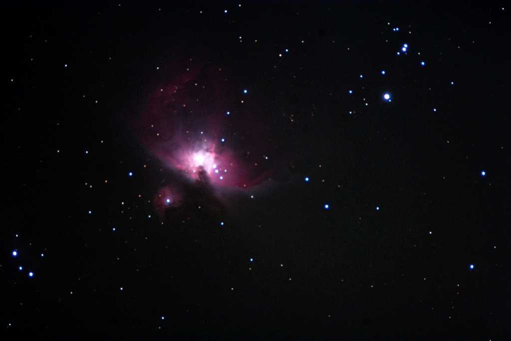 Am 04.12.09 konnte der Orionnebel (M42) mit einem 127/952mm Refraktor beobachtet werden. Das Bild ist eine Einzelaufnahme mit 84 sec. Belichtungszeit und wurde mit einer EOS 20Da aufgenommen. [mehr]