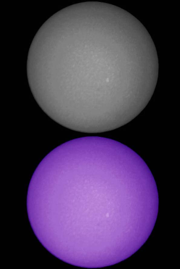 Am gestrigen Freitag konnte die Sonne mit der Mintron-Kamera beobachtet werden. Dabei wurde ein Filter verwendet, der nur für Licht der Wellenlänge 393.4 mm (blaues Licht) durchlässig ist. Im Licht der Kalziumlinie werden andere Details der Sonnenoberfläche sichtbar, die man sonst nicht sehen würden, wie z.B. helle und ausgedehnte Fackelgebiete, helle Zonen usw. [mehr]