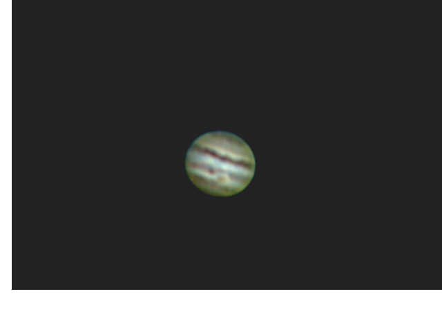 Am 19.10.2009 um 21°° MESZ konnte bei mäßigen Seeing der Jupiter beobachet werden. Insbesondere der große rote Fleck, ein seit hunderten Jahren auf dem Planeten tobender Wirbelsturm, kann gut auf dem Foto erkannt werden.