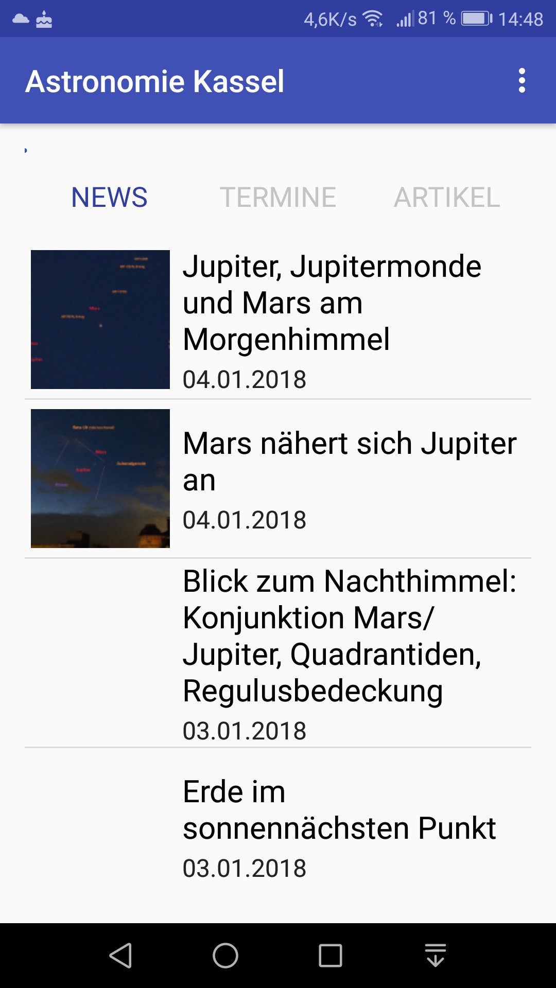 In der kostenlosen Astronomie Kassel App erhalten Sie Informationen zu: